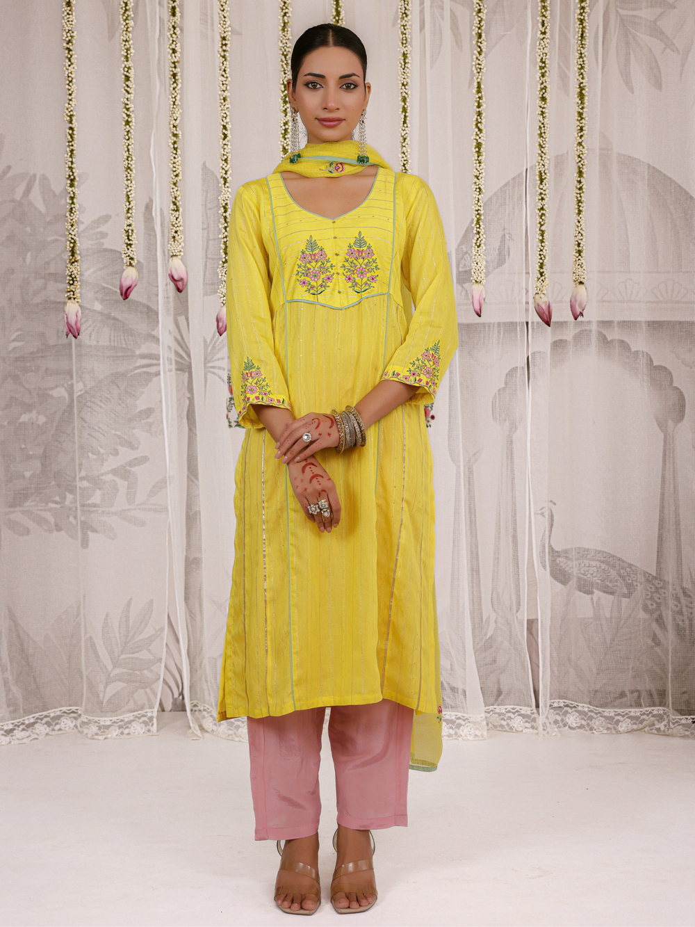 Yellow Ethnic Straight Kurta Set with Embroidered Dupatta